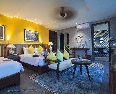 Tận hưởng khung cảnh sông nước và hồ bơi ngay trước mắt. Phòng gồm 1 giường lớn và 1 giường nhỏ, mang lại sự tiện nghi và thoải mái cho nhóm bạn hoặc gia đình nh
