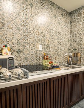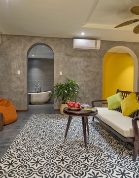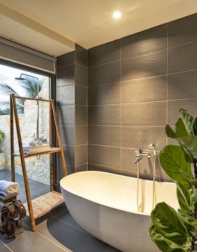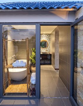 Phòng được bố trí hai phòng tắm riêng biệt – trong nhà và ngoài trời, mang đến trải nghiệm thư giãn đầy phong cách giữa thiên nhiên. Ngoài ra, khu vực bếp tiện nghi và phòng khách thoáng đãng giúp bạn tận hưởng kỳ nghỉ dài ngày như đang sống trong một căn hộ nghỉ dưỡng đẳng cấp.
